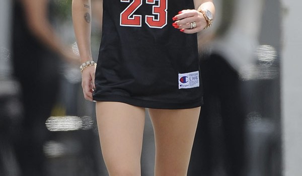 Miley Cyrus opted for a new look when she stepped out at the CenterStaging Studios lot in Burbank on June 23. The 20-year-old singer continues to show off her unique sense of style, this time rocking an oversized basketball jersey and sexy striped Saint Laurent sandals. Could she be getting ready to shoot yet another video?