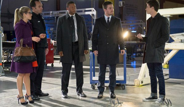 Holy cliffhanger, Batman. Err, sorry — wrong DC Comics vigilante franchise. Barry Allen (Grant Gustin) finally came to Starling City for an explosive episode that ended with Oliver (Stephen Amell) lying motionless on a table, fighting for his life. Something tells us he’ll pull through, and with a new, adorable member on his team to boot — which is good, because shooting Roy (Colton Haynes) in the leg wasn’t a great move for that whole “Arrow playing nice” objective. Oh, and did I mention that Moira (Susanna Thompson) knows about Ra’s al Ghul? Yeah, this one was pretty major. Read on for more!