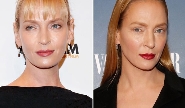 Uma also opted out of wearing any eye makeup, and it appears as if her bangs have finally grown out which left her now smoother forehead on full display.