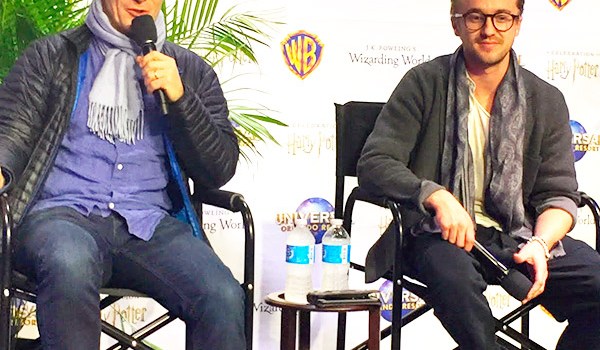Like father, like son! The Malfoys from the Harry Potter movies are back in action again, as Tom Felton ,29, and Jason Isaacs, 53, reunited Friday Jan. 27 to celebrate all things HP. Along with Warwick Davis ,46, and Matthew Lewis, 27, the Malfoy boys dropped in on fans at Universal Studios’ ‘Celebration of Harry Potter’ weekend, an entire 3 days filled with magic and special surprises. Don’t they still look as think as thieves together? Adorable!