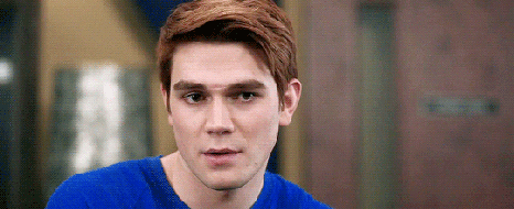 Archie then made his lack of feelings for Betty clear right off the bat, but didn’t expect for her to fall for his best friend, or for her to fall for anyone else, let’s be honest. He’s doing his own thing — he’s literally kissing a random girl in a band, flirting with Veronica and oh yeah, sleeping with his teacher (the only Pacey-ish thing he’s done). The moment that Betty and Jughead got together, however — Archie sees him comforting her over her family drama — he gets weird. I mean, this was his face when Veronica mentioned Jughead is Betty’s “boyfriend.”