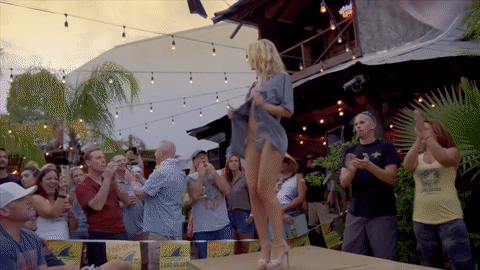 “Don’t be nervous, you’re the most gorgeous girl here,” he tells her before she takes the stage. “I’m gonna vote for you — if you don’t win, it’s rigged.” With that, she does take the stage, takes off her t-shirt, and struts her stuff in a bikini and heels. When she’s asked, “What’s your favorite thing to do in your free time?,” Brandon yells, “Me!”