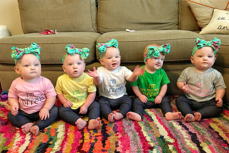 “[Paternal postnatal depression] was something that slowly got worse and worse over the course of months,” Adam told us, recalling the period of time after his five daughters: Parker, Riley, Olivia, Hazel, and Ava, were born all at once two years ago. “I had a major shock to my system from the initial surprise of finding out we were having five babies at once, to the enormous responsibility that I knew that I would be responsible for.” Adam and his wife, Danielle Busby, already had one daughter, Blayke, 6, when they found out they’d be expecting the quints, who are now two. To say the least, Adam immediately began to feel overwhelmed.