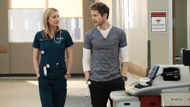 When Conrad and Nic take the patient and Mary to start radiation, Darryl asks what it means to have a 25% longer lifespan expectancy. Conrad confesses that it’s about 5 weeks added onto his prognosis and explains he’ll likely feel sicker and more nauseous undergoing treatment. The couple is livid no one told them earlier, and Darryl asks the doctor to be straight for him and tell him what he’d do in his situation. Conrad says he’d rather spend the time he’d have left with his loved ones, not at Hunter’s clinic. “Start the paperwork now,” Darryl decides. “Discharge me or I’ll walk out of here myself.” Mary doesn’t think he can do that, but Conrad says hospitals aren’t prisons. “It’s called eloping,” Nic explains about what happens when a patient slips away without being discharged. The resident adds that they’ll have hospice check up on them once they’re settled at home, should they choose to leave now. Mary helps her husband off the gurney, and they start to head out of the hospital. Before leaving, she thanks the two medical aides and tells them they’re a very cute couple. (It’s true!)