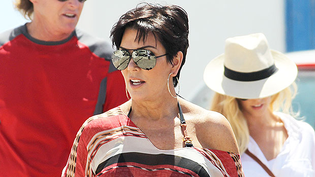 What’s even more amazing is that Kris’ stomach is rock hard flat and this is after she had four kids with first husband Robert Kardashian Sr. She has one arm up in the air in the photo where she’s showing a big, bright open-mouthed smile. Her other arm is around best pal at the time Faye Resnick, who is wearing a long cover-up and rocking an 80’s perm of curly hair.