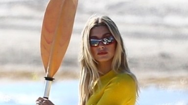 Hailey was seen standing in front of the water holding a kayak paddle and stretching while a boat sat to her left. While it initially looked like Hailey was hitting the beach for an early morning kayak adventure, it turns out she was actually doing a photoshoot! Crew members and equipment from the shoot could be seen standing around her in various photos — explaining her absolutely flawless makeup and perfectly blown out hair.