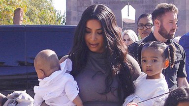 Kim’s photo comes two days after she shared a family photo featuring Kanye, 43, North West, 7, and Saint West, 4. In the Oct. 3 photo, Kim and her clan are all wearing acid-washed inspired outfits. Kanye, in a rare social media appearance, has the brightest smile. Saint rested his head on his mom’s knee, his massively curly hair flowing in the breeze.
