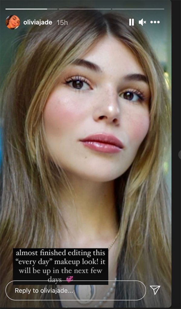 Olivia Jade is slowly but surely returning to YouTube after her disgraced parents, Lori Loughlin and Mossimo Giannulli, served time for their involvement in the college admissions scandal. On January 25, the 21-year-old social media star took to her Instagram Story to tease her upcoming vlog. “Almost finished editing this ‘every day’ makeup look! It will be up in the next few days,” she wrote, adding an image of herself staring off into the distance.