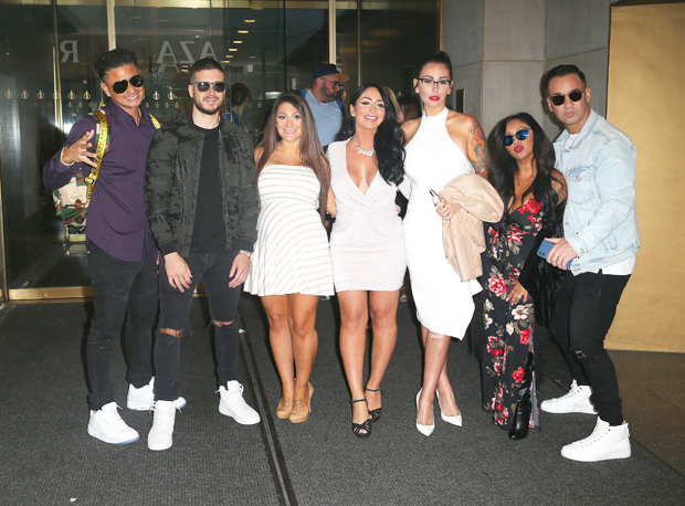 The cast of ‘Jersey Shore: Family Vacation’ at the ‘Today Show’ in New York City on August 23, 2018. Pictured: Pauly D DelVecchio, Nicole ‘Snooki’ Polizzi, Mike ‘The Situation’ Sorrentino, Jenni JWoww Farley, Vinny Guadagnino,Deena Nicole Cortese, Angelina Pivarnick[MEGA].It’s also worth noting how interesting it is that Nicole is out with Angelina. The two notoriously had some intense clashes, some of which may have stemmed from rumors that circulated about Angelina making out with JWoww‘s [Jenni Farley’s] boyfriend in Las Vegas. After Angelina’s wedding, circumstances didn’t seem to improve between the two. Perhaps the reality TV stars are ready to bury the hatchet? Only time will tell.