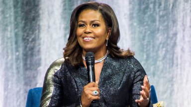 Ellen then asked Michelle to bring “something that’s a guilty pleasure of yours.” The Becoming author didn’t even have to leave her chair, reaching over and picking up a clear cocktail and noting “Just happen to have this,” taking a sip and making a face noting, “That’s strong!” By the end of the game, Michelle had raised $50,000 for her Partnership for a Healthier America campaign. And hopefully Barack was later able to find his golf clubs.