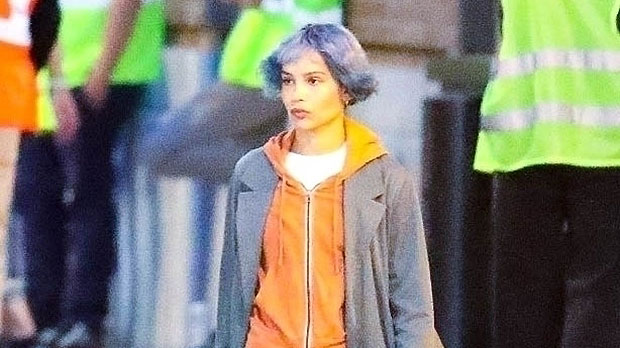 Zoe Kravitz, 32, turned heads on Apr. 29 when she showed up to the set of the upcoming HBO Max thriller KIMI with purple hair! The actress’ locks, which were also cut into a bowl style, also had a bluish tint to them as she walked around the Los Angeles area. She also wore a zip-up orange hoodie that was over a white top and under a long gray coat, white sweatpants, and tan boots.