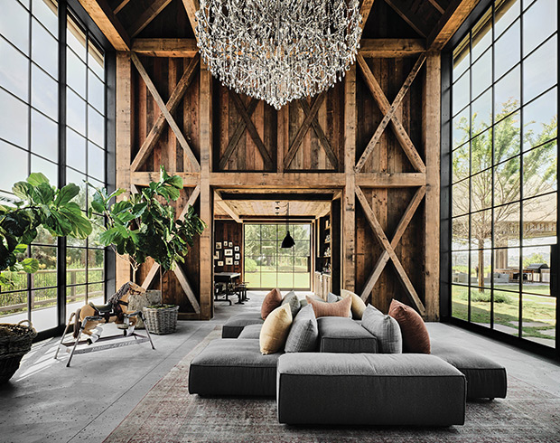 Described as the “master of the so-called modern farmhouse” by AD, Backen applied his skills to help create Mila and Ashton’s home, a “testament to his alchemical handling of reclaimed wood, board-form concrete, and glass.” Howard said that Ashton and Mila are “two of the smartest, most inquisitive people we’ve ever worked with. We talked about everything from beam sizes to the details of the cross bracing to the junctures of the wood planks and concrete. These are not the kinds of conversations we have with every client.”