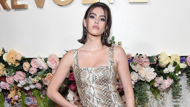 Amelia Hamlin, 20, forgot her top in this photo! The brunette modeled just a pair of summer-ready lilac pants as she covered her best with her hands in an Instagram post shared on Friday, July 2. “pants are @boohoo, top is m.i.a.,” she quipped in the caption, shouting out popular British fast fashion label BooHoo. She kept her brunette hair down and center parted for the look, rocking a light makeup look including a matte nude lipstick.