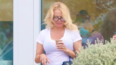 Pamela Anderson, 54, was looking great during her latest outing on Nov. 9! The Baywatch star opted for no makeup and a white semi-seer T-shirt, gray sweatpants, and sandals as she stopped to get coffee in Malibu, CA. She had her long blonde locks down with the look and had dark-framed glasses placed on the top of her head as she carried a black purse in one hand and her coffee cup in the other.