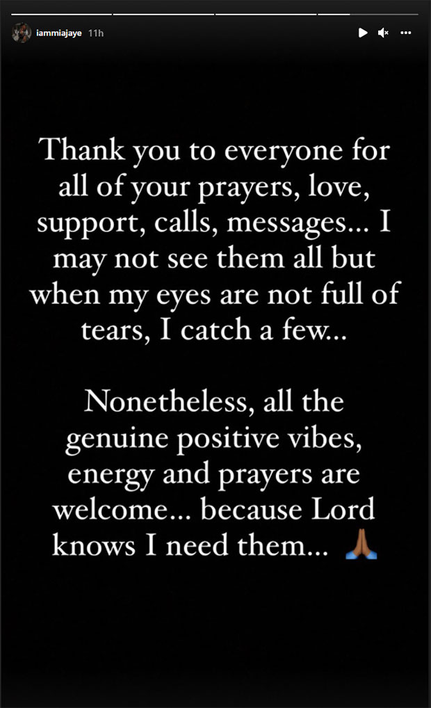 “Thank you to everyone for all of your prayers, love, support, calls [and] messages. I may not see them all, but when my eyes are not full of tears, I catch a few,” Mia Jaye posted to her Instagram story on Thursday (Nov. 18), one day after her longtime boyfriend, Young Dolph, was shot and killed outside a cookie shop in Memphis, Tennessee. He was 36. The killing sent a ripple throughout the hip-hop world and left Mia devastated. “Nonetheless, all the genuine positive vibes, energy, and prayers welcomed… because Lord knows I need them,” she added.