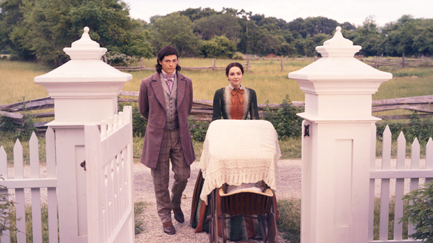 Back inside, Austin and Sue reveal the name of their baby – Edward, after his grandfather – and when Higginson returns, he settles in to wait for Emily to come down. But she never does, and it’s really a very bittersweet moment, seeing the family gathered together without her, thinking of the years ahead, when Emily won’t be as present in their outside lives as she was. Then, Sue raises a knowing eye to the ceiling, knowing upstairs, her love is working away, as Higginson says, “People might have to wait centuries to finally understand her.”