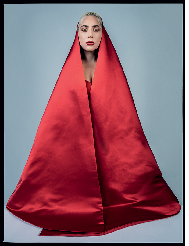 While’s Gaga cover for the photo showed her in an elegant black dress with a red flower on her chest, the inside photos saw the “911” singer wrapped in red fabric. In one of the photos, Gaga holds her own face in one hand, a pair of scissors in the next. The picture has been altered to look as if she had sliced off her own visage, a move that got her Little Monsters raving when Gaga shared the picture on Instagram. “ARTPOP VIBES.”
