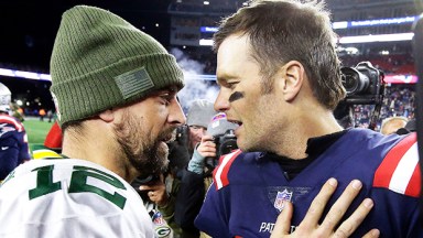 The 2022 NFL Playoffs are underway, and there’s a good chance that Aaron Rodgers will face Tom Brady in the NFC Championship game. When and if these two titans of the gridiron meet, Tom, 44, might have a score to settle with Aaron, 38, over an offhanded comment the Green Bay Packers quarterback made while chatting with Sportsnet’s Cabbie Richards. After being handed a football to throw at a drone, Aaron quipped, “This is too firm for the Patriots.”