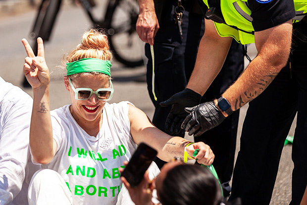 Busy shared a video of her arrest on her Instagram with a lengthy post. “On Friday, the right to make decisions about our own bodies and lives – a right we’ve had for almost 50 years – was ripped away from us by this new Supreme Court, a Court whose personal belief’s (sic) are NOT shared by the vast majority of Americans. I am one of those Americans.”