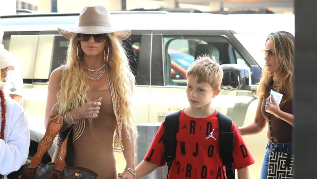 Jessica Simpson, 41, looked like a fashionable and busy mom on July 1! The singer was photographed out and about at LAX airport with her two oldest children, Maxwell, 10, and Ace, 9, as she donned a long tan SKIMS dress and matching platform shoes. She had her long blonde hair down underneath a light tan cowboy hat and added sunglasses and jewelry to the look as she held a designer handbag.