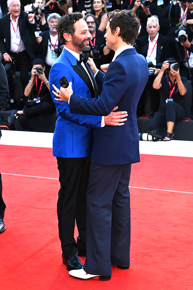 There were plenty of emotions – and bodily fluids – flying during the Don’t Worry Darling screening at the Venice Film Festival, courtesy of one Harry Styles. If fans didn’t obsess over whether Harry, 28, gobbed on his costar, Chris Pine, he was swapping spit with his other costar, Nick Kroll. Actually, things didn’t get that wet and wild between Nick, 44, and Harry, but the two did share a kiss after the viewing. As the audience gave the film a standing ovation, Nick – in an electric blue jacket – embraced Harry, and the “Watermelon Sugar” kissed the Big Mouth creator on the lips.