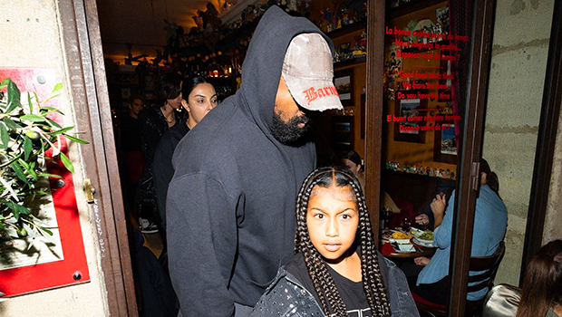 Earlier in the day, North was also seen out and about in Paris with her face fully covered in leather — much like both Kanye and Kim have done in the past. Her outfit appeared to be identical to the one she wore out for dinner, sans the mask which also included leather covers for her long, black braids. It’s unclear if, like her parents, North was also trying to send a message: at a fashion week show for Jean Paul Gaultier back in July, North made headlines as she held up a “please stop” sign aimed at photographers and videographers taking her photo.