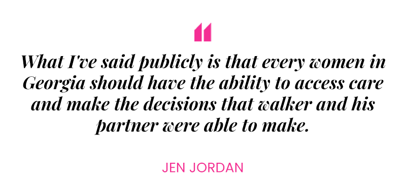 Of course, right now, most Georgians don’t have the right to make that decision. If Jordan is elected, she may not be able to do anything to overturn it, but she says she will respect the decisions that local district attorneys may make, not to charge doctors and other providers for providing abortions.