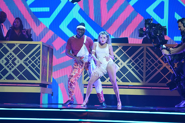 Shangela and Gleb Savchenko return to the ballroom after their first perfect score last week. They spice up the room with their rousing samba performance to “Spice Up Your Life” by Spice Girls. Derek raves over their “incredible, amazing” performance, but he does point out that Shangela’s “footwork is still a little sloppy at places.” Carrie Ann Inaba gives Shangela and Gleb a standing ovation. “That was lit!” she says. Len notes that Derek is right when it comes to the footwork, but says the performance had that “wow” factor. Shangela and Gleb’s scores: Carrie Ann = 10; Len = 9; Derek = 9; Bruno = 9. Total Score = 37 out of 40.
