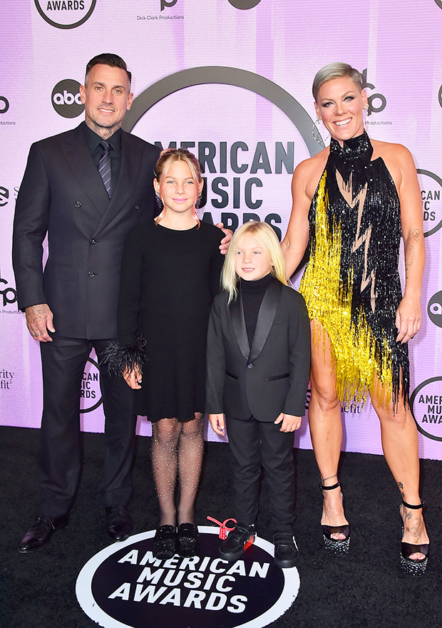 Call it a “catass-trophe.” Before Pink and her family made their way to the Microsoft Theatre in Los Angeles for the 2022 American Music Awards, the “Never Gonna Not Dance Again” singer posted a revealing video to her Instagram. “I’ve been tellin’ you guys that Mr [Carey] Hart has a juicy booty,” Pink, 43, said to her followers before turning the camera towards her and Carey’s kids, Willow Sage Hart and Jameson Hart. “What just happened to papa?” Pink asked Willow, 11, who shrugged. The soon-to-be 6-year-old Jameson shrugged. Apparently, Carey’s booty was too juicy for his pants.