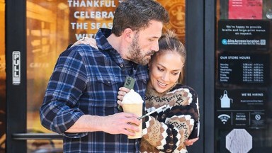 Jennifer Lopez and Ben Affleck shared a laugh and snuggle as they hit up a Starbucks! The Town actor, 50, sweetly put his arm around his wife, 53, as they left the popular coffee chain in Santa Monica, California on Friday, Dec. 9 in the images. Ben was sipping on a milkshake style Frappuccino in his left hand, while Jennifer didn’t appear to have picked up any of their famous seasonal holiday beverages. They seemed to be in good spirits as the “Dear Ben” singer laughed at whatever he was saying, placing her hand on his chest as they walked together.
