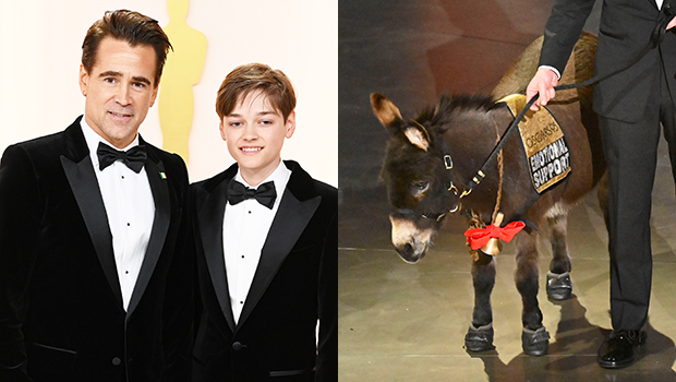 A special guest joined host Jimmy Kimmel during the 95th Academy Awards on Sunday (Mar. 12). Jimmy, 55, brought out Jenny to donkey from The Banshees of Inisherin, to a round of applause from all those at the Dolby Theatre in Los Angeles. Two people who were happiest to see Jenny were Colin Farrell and his son, Henry, who accompanied the Banshees actor to the ceremony. The 13-year-old flashed a smile as Colin was amazed to see his costar. “Not only is Jenny an actor, she’s a certified emotional support donkey,” said Jimmy. “At least, that’s what we told the airline to get her on the airplane from Ireland.”