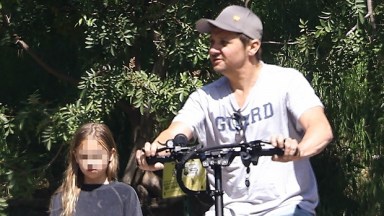 Jeremy Renner continued his recovery on Sunday (Apr. 9), three months after his near-fatal snowplow accident. Jeremy, 52, was spotted outside his home in Los Angeles, getting around with the help of a motorized scooter. The Avengers star’s daughter, Ava, 10, accompanied her father as he got around. He looked in good spirits as he sat in the scooter, his feet touching the ground. Compared to how he looked while using a bulky scooter when visiting Six Flags Magic Mountain days before, Jeremy seemed almost back to normal in these new pics.
