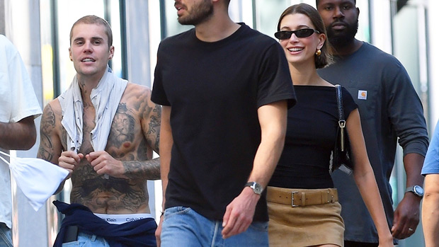 The sensational-looking couple were all smiles as they pounded the pavement together. At one point, Hailey leaned into her beau, who had his hand on her back, while they sipped their red beverages. In another cute moment, the couple made eyes at each other as they entered a clothing store. And if their PDA wasn’t attention-grabbing enough, Justin’s bare torso took up the slack.