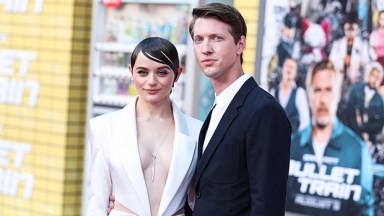 Now, friend and fellow actress Kaitlyn Dever is sharing images of the surreal and stunning wedding, including pics of the Bullet Train actress’s epic wedding dress! In the first photo of the Sept. 8 carousel, Joey and her new groom held hands while chatting with guests, with the bride wearing a lovely plunging strapless off-white wedding gown covered in petal-like scallops and the groom rocking a black and off-white tux.