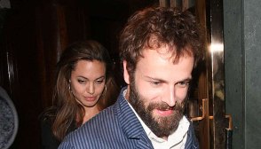 Angelina paired the chic ensemble with a nude colored ballet flat and Louis Vuitton bag, later adding a trench coat for the apparent visit to Johnny Lee Miller’s.