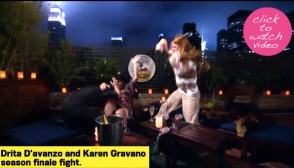 Karen Gravano tried to make peace with Drita D’avanzo by offering her the first chapter of her book during the June 19 episode of Mob Wives — but Drita interprets Karen’s action as a direct attack at her husband Lee D’avanzo and her family. During the season finale, Drita calls the girls for a sit-down to hash out the problems at hand, but the night quickly turns into a bloody battle between Karen and Drita. Read More & Video!