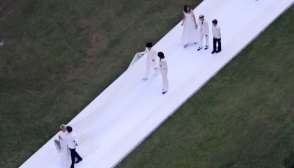 Samuel confidently walked down the aisle behind big sister Violet during dad Ben Affleck’s wedding to Jennifer Lopez, held in Georgia.