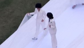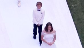 Adorable! Violet Affleck took on the big sister role as she lead new stepbrother Max down the aisle following dad Ben and bride Jennifer Lopez.