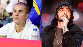 One of Eminem’s fans was rapping along to Slim Shady during the Super Bowl LVI Halftime show, and that fan – Justin Bieber – was nailing every single word!