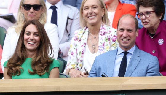 Kate Middleton and Prince William were photographed sitting in seats to watch the women’s final at Wimbledon on July 10, in her first public outing since quarantining for seven days.