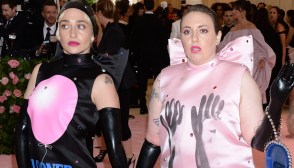 Lena Dunham Wears Pink Mini Dress & Black Rubber Gloves To Met Gala 2019