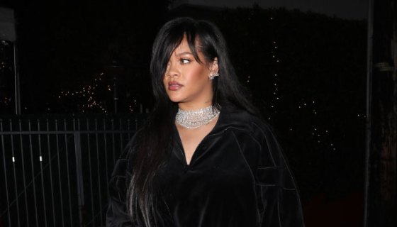 Rihanna Is Glam In Long Black Dress & Diamond Choker After Super Bowl Announcement: Photos