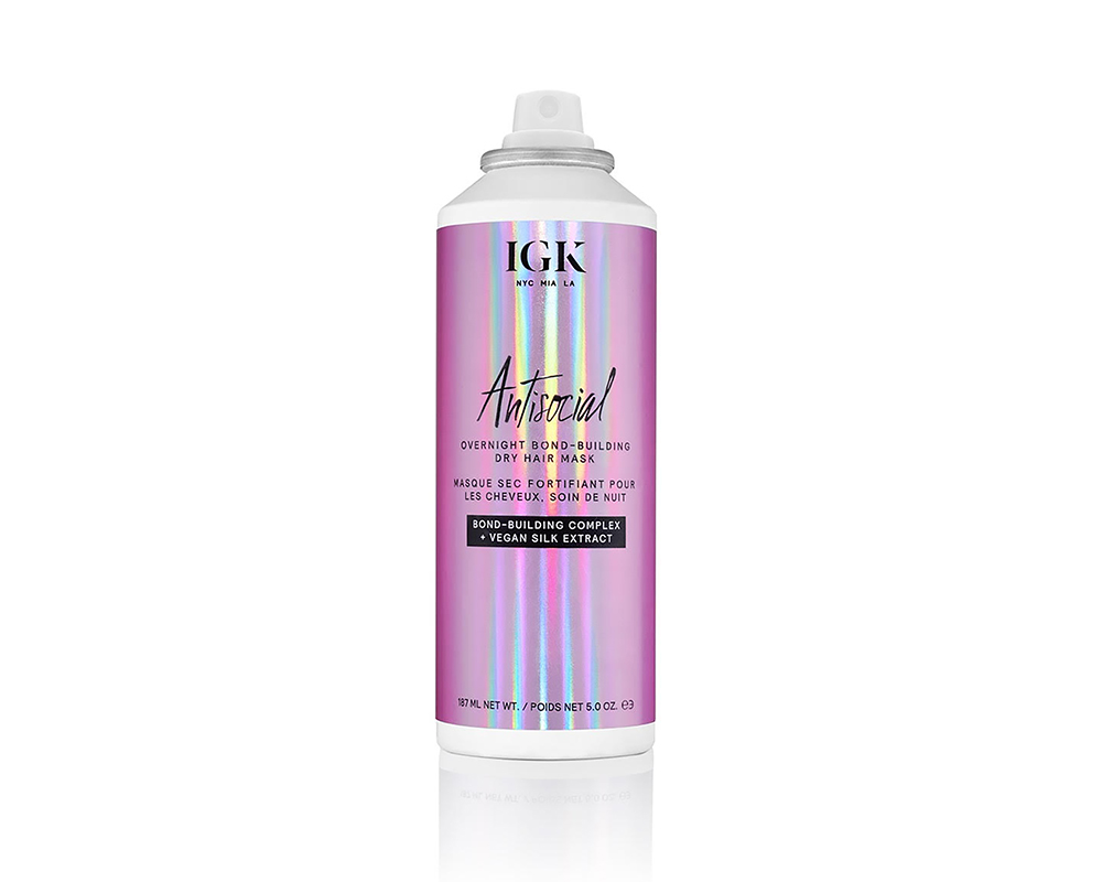 One of our favorite hair masks is the IGK Antisocial Overnight Bond-Building Dry Hair Mask which is a fascinating time-release mask that is actually applied to dry hair and you leave it in, to repair and soften your hair. Another one of our faves is the Kerastase Masque Extentioniste Hair Mask which is intended for hair that is damaged and is taking a while to grow back. The mask actually works to grow your hair back and lengthen your locks!