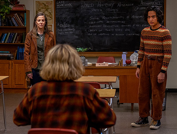 The School Spirits finale begins with Simon searching through Maddie’s house. He stumbles across her necklace, which makes Simon and Maddie both pause. Maddie demands that Simon bring her mother to school. She’s starting to believe that her own mother killed her.