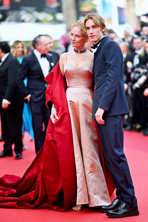 Uma attended the 2023 Cannes Film Festival and walked the red carpet on May 16, arriving to see Johnny Depp‘s new movie, Jeanne du Barry. Her son, Levon Thurman-Hawke, joined her. The 21-year-old looked just like his mother, with the same cheekbones and jawline. He also towered over his mother, which is no small feat since she’s 5’11.