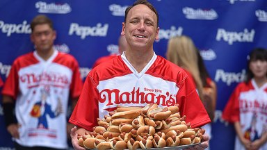 Who is Joey “Jaws” Chestnut? He’s the most famous hot dog eater in the world! The 40-year-old is a 16-time winner of Nathan’s famous Fourth of July hot dog-eating contest, held at Maimonides Park on Coney Island on the Fourth of July each year. The competitive eater has won the title a whopping 15 times, and he holds the record for having eaten 76 hot dogs in 10 minutes (a feat he accomplished in 2021).