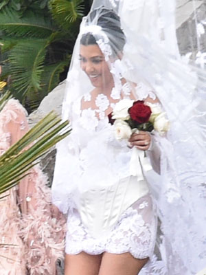 Kylie Jenner Wears Skintight Gray Dress For Kourtney Kardashian & Travis Barker’s Wedding: Photos