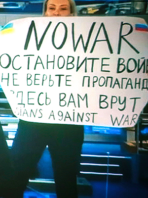 Ukrainian President Volodymyr Zelenskyy thanked the journalist for her bravery in speaking out against the Russian war on TV.