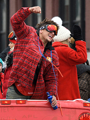 Patrick Mahomes Chugs A Beer At Chiefs Super Bowl Parade With GF Brittany Matthews — Watch